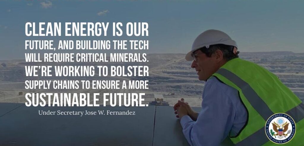 To advance the goals of the MSP, Under Secretary Jose W. Fernandez convened an online discussion with Argentine Secretary of Mining María Fernanda Ávila, international private sector representatives, and MSP partners to discuss critical minerals opportunities in Argentina. This meeting served to familiarize MSP partners and the private sector with Argentina’s critical minerals sector and projects of potential interest for investment and support. Engagements like this help promote the clean energy transition, further mobilizing resources towards diversifying mineral supply chains and advancing the Biden Administration’s priority of regional collaboration on securing responsible and sustainable minerals.